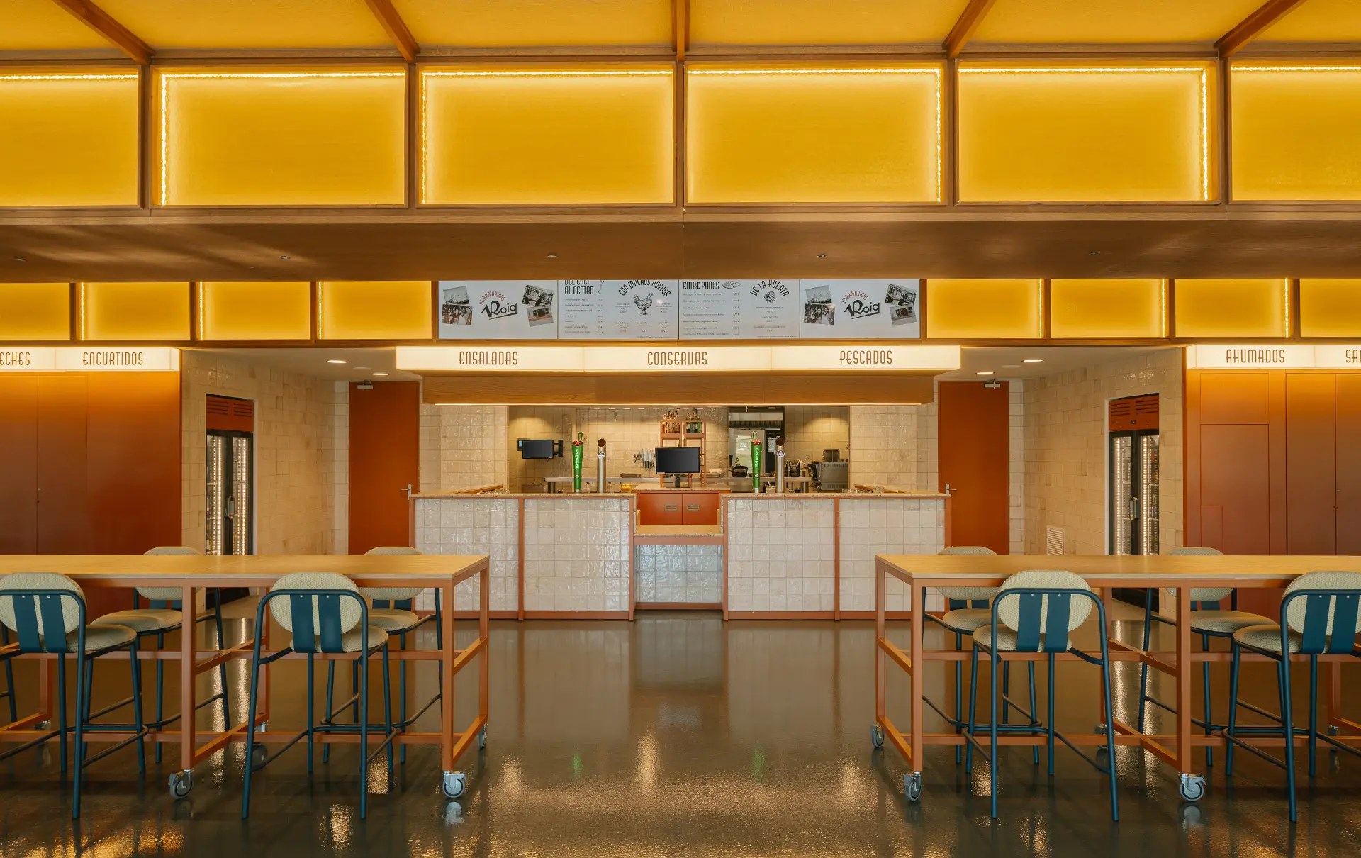 The interior design unfolds through a bold visual language, creating a sequence of spaces with strong sensory impact, where the Valencia Basket brand is naturally integrated into walls, ceilings, signage, and display elements. It is not simply about setting the scene, but about turning every transition into an active part of the experience. Each environment has been conceived to intensify the experience of the game through design, building an energetic atmosphere for a high-performance team.